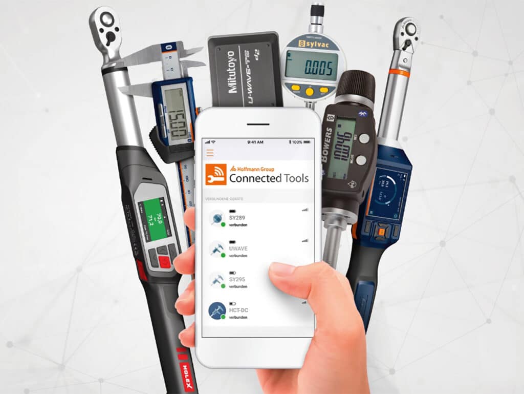 Een belangrijke ontwikkeling in het Hoffmann gamma van meettechniek zijn de zogeheten HCT, de Hoffmann Group Connected Tools. Van Dijk: “Bluetooth zorgt ervoor dat deze meetinstrumenten eenvoudig verbinding kunnen maken met computer, tablet of smartphone. Met een simpele druk op de knop worden de verkregen meetresultaten meteen doorgezonden naar waar ze nodig zijn, zonder risico op fouten.”