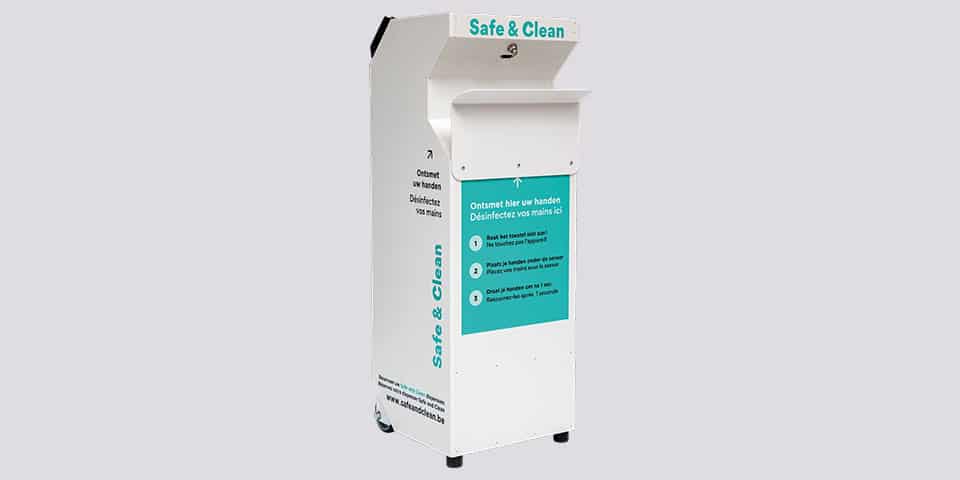 Safe & Clean is een Belgisch bedrijf dat spray dispensers maakt en verdeelt voor desinfectie van de handen in en voor bedrijven of handelszaken. Het betreft autonome en verrijdbare units in een duurzame, weersbestendige uitvoering met aluminium behuizing en stalen onderdelen.