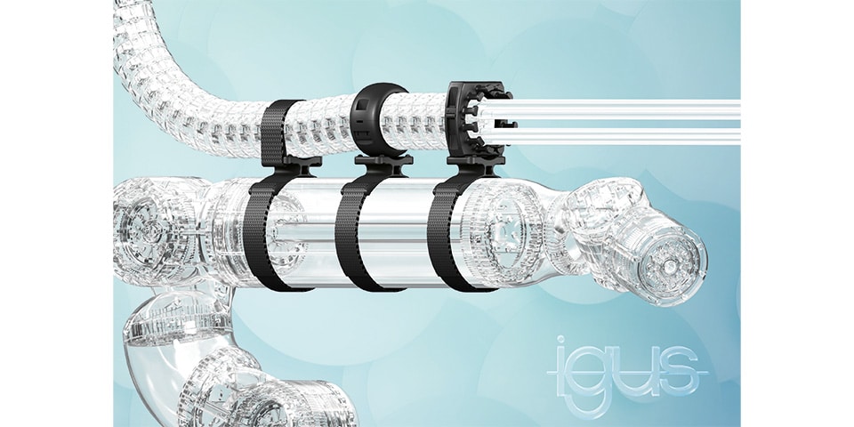 Cobots blijven een grote trend in de productie en worden niet alleen ingezet door de grote industriële spelers maar ook door kleine en middelgrote bedrijven. De reden is, dat de automatisering van subprocessen waarborgt dat bedrijven concurrerend in de markt kunnen zijn. De collaboratieve robots werken hand in hand met mensen, in hun directe nabijheid. Sensoren en camera’s alsmede een energietoevoersysteem waarborgen de veiligheid van het proces. igus heeft de driedimensionale triflex R kabelrupsen ontwikkeld om ervoor te zorgen dat kabels en slangen betrouwbaar en compact kunnen worden geleid bij cobots. Voor een zekere bevestiging van de kabelrups of de beschermslang aan de robot, kan de gebruiker nu vertrouwen op de nieuwe Lean Robotics houders van igus. De universele houders met klittenband zijn flexibel qua vorm en passen zich aan elke robotarm aan. Een slank ontwerp met afgeronde hoeken verhoogt de werkplekveiligheid door de kans op letsel bij contact met de robot te reduceren.
