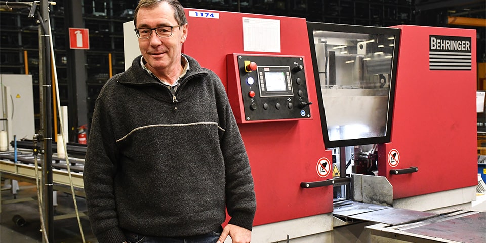 Momenteel beschikt Mariasteen over twaalf zaagmachines, elk aangesloten op een volautomatisch langgoedmagazijn. “Automatisering is een must, ook als maatwerkbedrijf. Om concurrentieel te blijven, maar ook omdat we bepaalde technische profielen, zoals lasser of heftruckchauffeur nauwelijks vinden.” De zaagafdeling neemt een prominente plaats in binnen de productie. “De moeder van alle werk hier”, vertelt Jansens. Het Behringer rood springt meteen in het oog bij een rondgang. De samenwerking dateert al van de jaren 80. “De oudste Eisele die vandaag nog productie draait, staat hier sinds 1990. In 2016 hebben we er nog een revisie op uitgevoerd. Niet stuk te krijgen”, zegt Jansens met een knipoog.