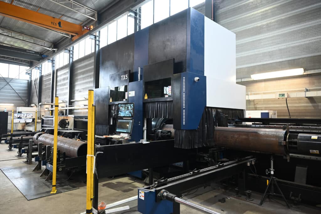 Concreet: Lumet kocht een buislaser HSG TX5 aan voor het snijden van de bolders die aan de meerpalen worden gelast. Verder werd er een plaatlaser G6025X aangekocht om plaatstaalvormen te snijden voor de loopvloeronderdelen van de lange steigerbuizen.