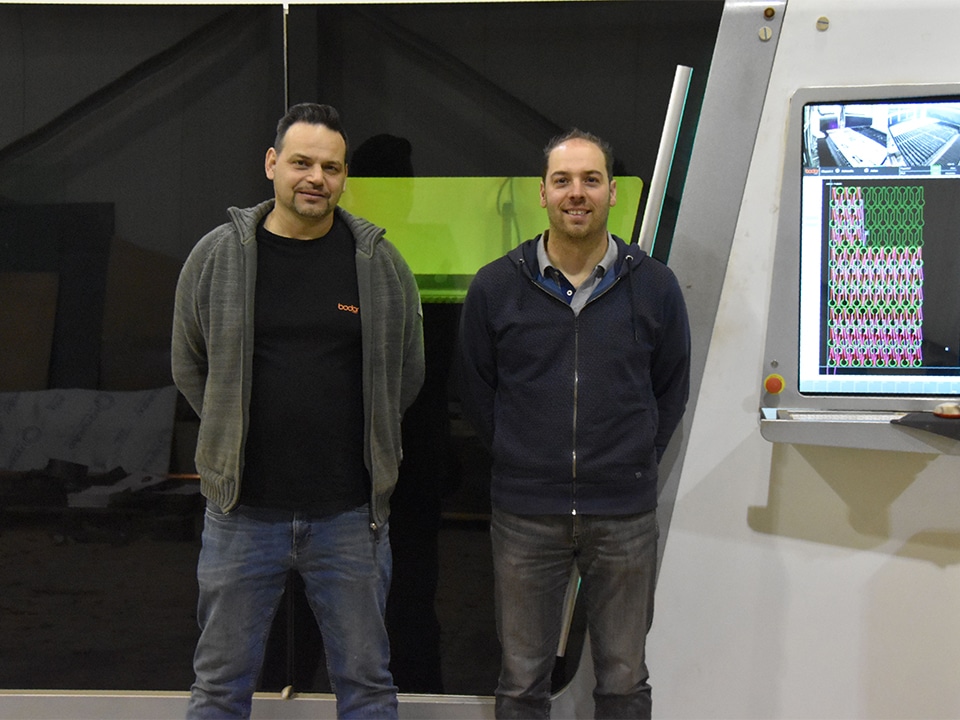Maarten Vermeiren en Kris Verheyen zijn eigenaar van plaatbewerkingsbedrijf ACD Laser in Essen. “Ongeveer twee jaar geleden gingen we op zoek naar een vervangmachine voor onze CO2-laser. Wanneer machines vier tot vijf uur per dag draaien, is de terugverdientijd van machines van Europese origine, erg lang. Op beurzen in Frankfurt en Hannover bezochten we daarom ook de kleinere hallen waar Aziatische leveranciers van fiberlasermachines hun producten voorstelden. Ons doel was in eerste instantie de aanschaf van een machine voor ons plaatbewerkingsbedrijf. Tegelijkertijd zagen we een opportuniteit om onze ervaring met lasersnijden met andere bedrijven te delen door Aziatische machines in België te verdelen. Door de lagere prijs van de machines van Aziatische producenten zien bedrijven die in het verleden hun plaatwerk uitbesteedden, nu mogelijkheden om zelf een machine aan te schaffen.” Verheyen en Vermeiren namen een tiental Aziatische bedrijven onder de loep en stelden hen kritische vragen waarna drie bedrijven op de shortlist terechtkwamen. Verheyen ging in China op onderzoek. Uiteindelijk besloot het tweetal om met Bodor samen te werken. En zo werd het nieuwe bedrijf Bodor Belgium geboren.