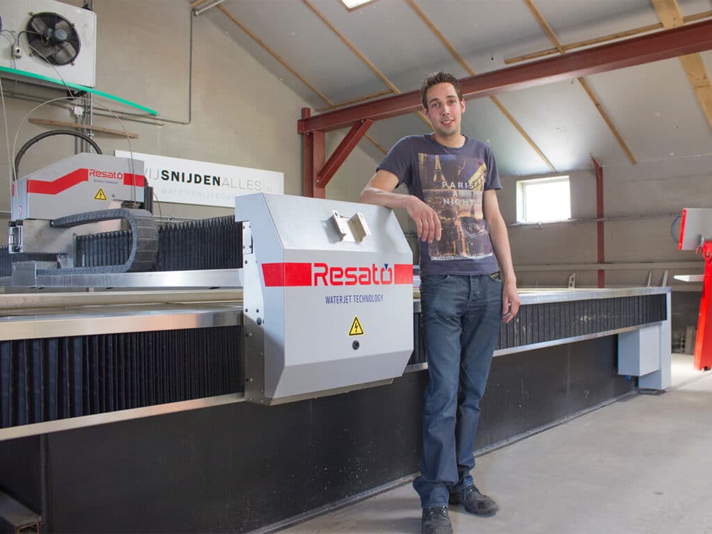 Datzelfde jaar werd door RIVEMA de ACM 3040-1 van RESATO aangekocht. Die waterstraalsnijmachine bood RIVEMA meer slagkracht en efficiëntie met een ideaal tafelformaat dat het snijden van bijna elke standaard plaatgrootte mogelijk maakt. “De machine breidde in hoge mate mijn mogelijkheden uit. Ik kon uitgebreide opties bieden aan mijn klanten en tijd en geld besparen. Het was een belangrijke sprong vooruit inzake respons en schakelvermogen“, aldus Versteeg. Na de uitbreiding van zijn machinepark met het RESATO waterstraalsnijsysteem, besloot Versteeg het nieuwe bedrijf ‘Wij Snijden Alles’ op te zetten om de klant ook gespecialiseerde waterstraalsnijdiensten te kunnen aanbieden.