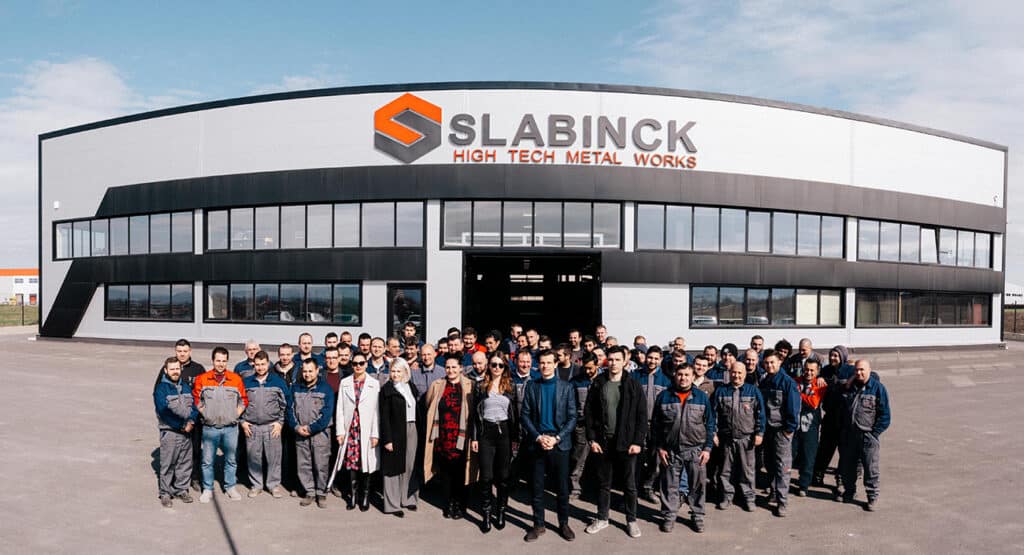 Omdat Slabinck de voorbije decennia is uitgegroeid tot een toonaangevende speler in de toelevering van plaatmateriaal en producten voor metaal- en plaatbewerkingsbedrijven, kijkt Anthony Slabinck over de grenzen om het bedrijf te doen groeien. “In onze hoofdvestiging in Brugge, met een oppervlak van circa 12.000 m², produceren we kleine en middelgrote series plaat-, las- en lakwerk. Enkele jaren geleden trokken we naar Noord-Macedonië om onze productie uit te breiden. Aanvankelijk huurden we er een bedrijfspand, maar vandaag beschikken we in de hoofdstad Skopje over een eigen vestiging van 5.000 m². Daar produceren we regelmatig bestelde stukken en alle middelgrote en grote series van onder meer snij-, zaag-, rol- en plooiwerk. De productie van complexere series, en ook alle nabewerkingen, blijven voorbehouden voor onze Brugse vestiging, waar we een automatische poederlak­installatie kunnen inzetten.”