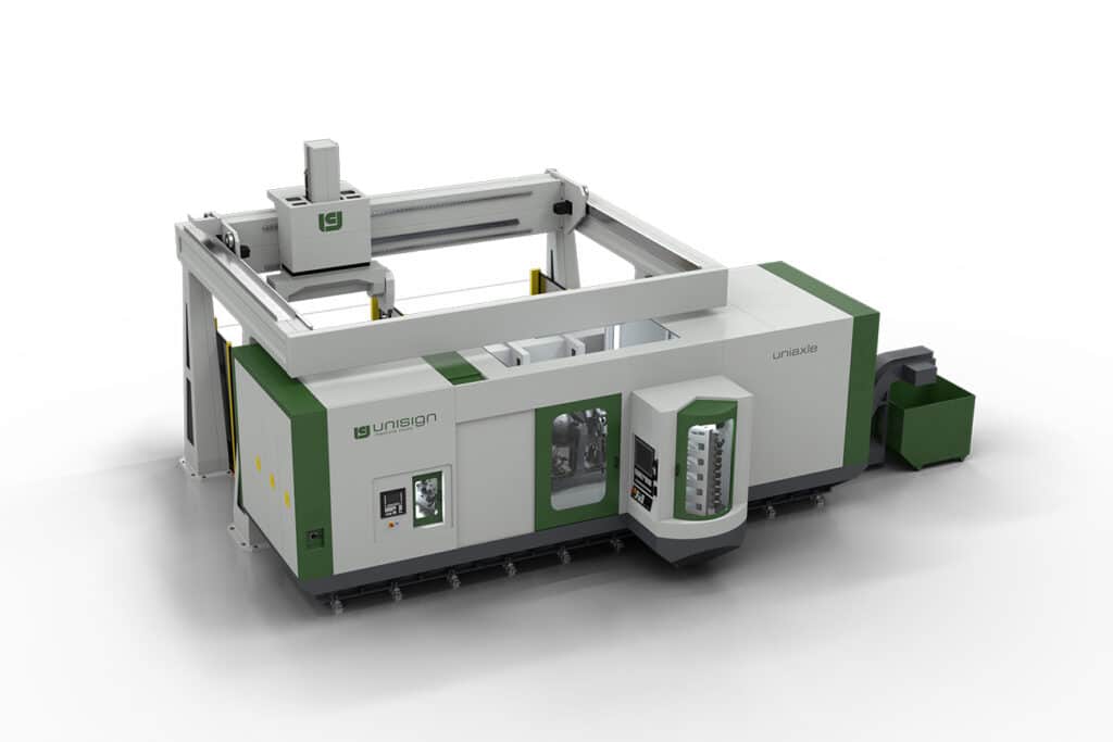 Alle bewerkingen voor vrachtwagen-achterassen in één opspanning op één CNC machine. Unisign Machine Tools heeft een revolutionaire nieuwe CNC machine ontwikkeld voor de truckindustrie: de UNIAXLE. Een speciaal CNC bewerkingscentrum dat gelaste én gegoten achterassen in één keer kan bewerken. Het verbetert de nauwkeurigheid en kwaliteit van achterassen. Het productieproces wordt bovendien sneller en kosteneffectiever.